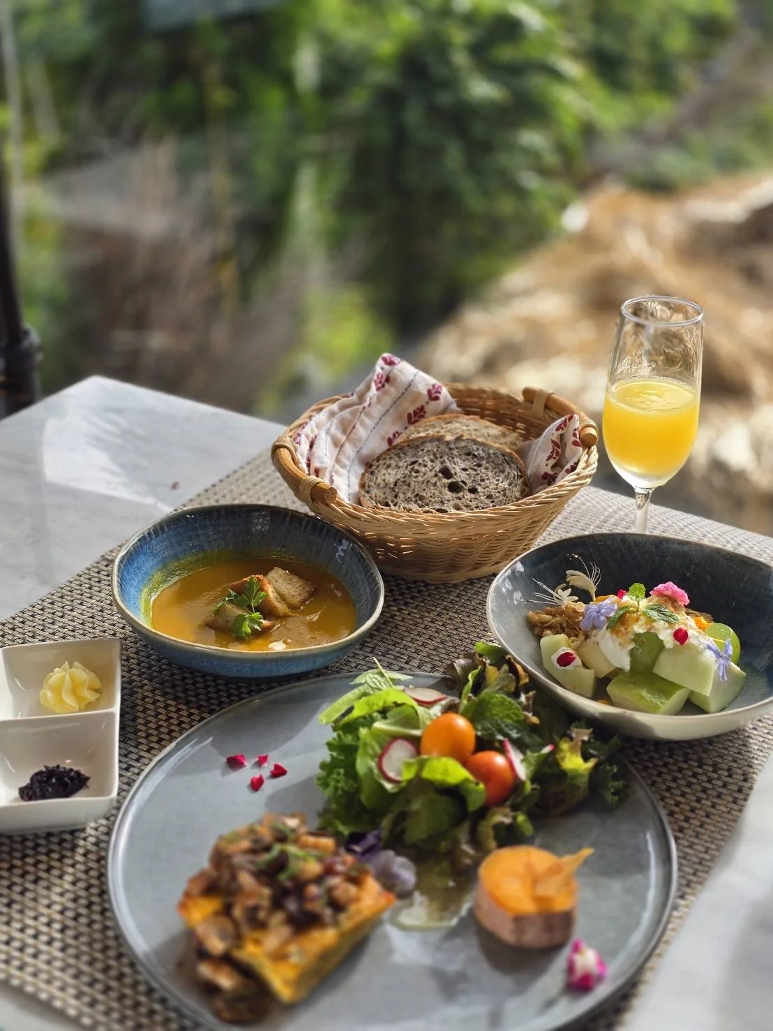 From fresh seasonal juice, homemade fruit yogurt, naturally leavened bread, to daily herb soup and salad, every dish highlights clean, natural flavors.
